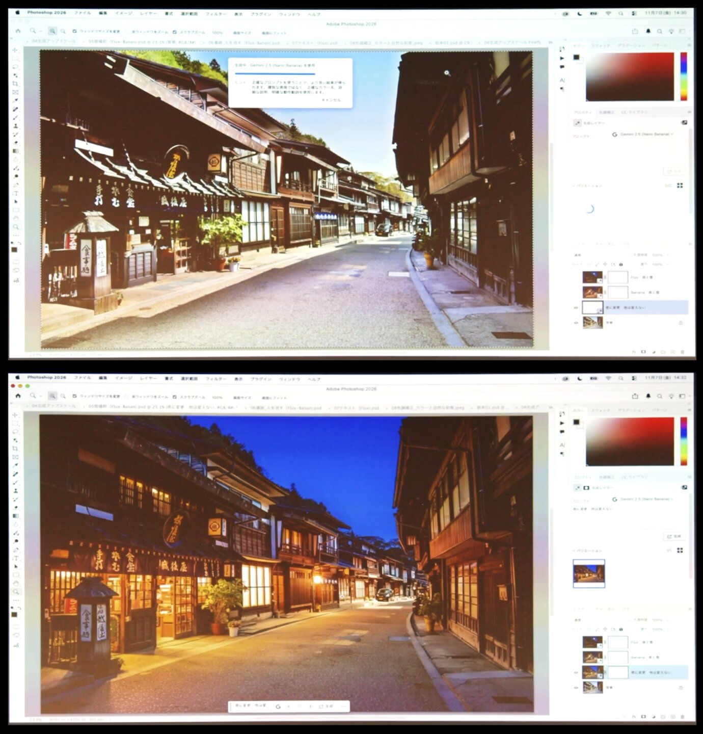 Nano Bananaでは、「他は変えない」「あとはそのまま」といったプロンプトを入れることで、不要な人物だけを自然に消したり、昼間の景色を夜景へ違和感なく変えられることをデモで紹介しました。従来の生成AIによく見られた「意図していない部分まで変更されてしまう」問題が大きく改善されたことがわかり、実務に使える期待が高まります。