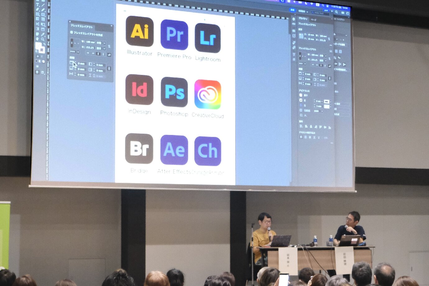 毎年好評いただいている、Adobe MAX直後に最新情報を紹介するセッション。今年もアドビ株式会社 岩本 崇 氏にご登壇いただきました。アドビアプリのデザインスクール「Desi(デジ)」講師の前田とのコンビで、新機能のデモを中心に解説していただきました。