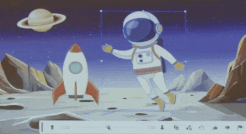 元のデータをもとに少しずつ角度を変えたイメージをAIが生成するので、処理にはそれなりの時間がかかります。今回は宇宙飛行士のイラストを使ってその場で生成しました。処理が終わってスライダーを使って回転させると、来場者の多くがスマホで写真や動画を撮っていました(本セッションは撮影OKでした)。