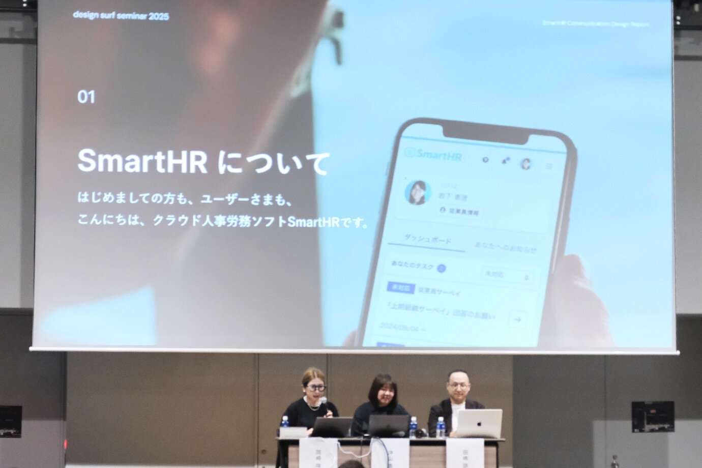 株式会社SmartHRは、クラウド型の人事労務システムを提供する会社です。サービス開始から10年を迎えた同社のブランディング統括本部から3名の登壇者を迎え、コミュニケーションデザインの変遷や最新のクリエイティブ事例が紹介されました。