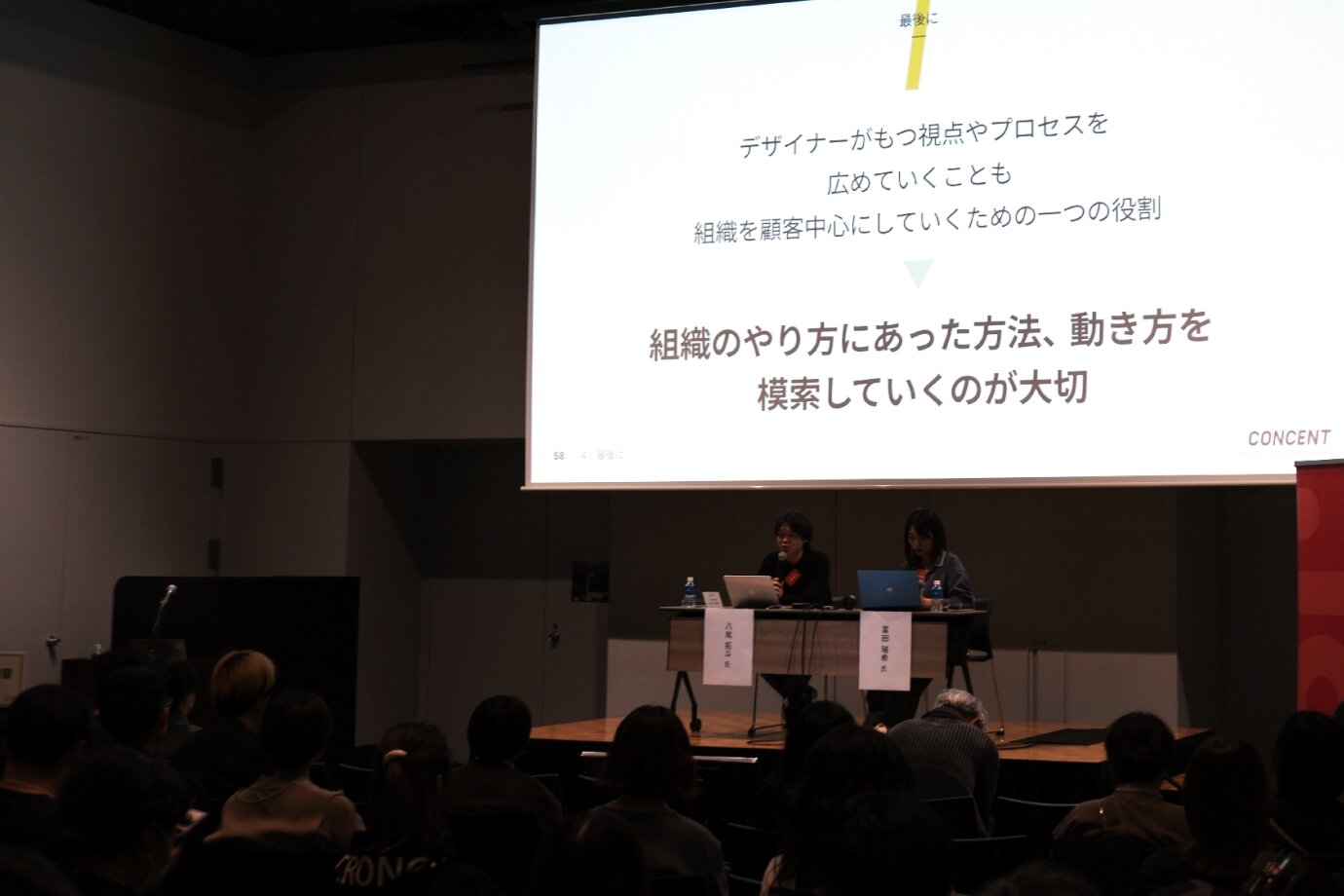 作り手としてではなく、顧客中心の視点や考え方を組織に根づかせていくためにデザイナーが貢献した事例紹介を通じて、デザイナーの新たな役割を考える上での大きなヒントを得られるセッションとなりました。